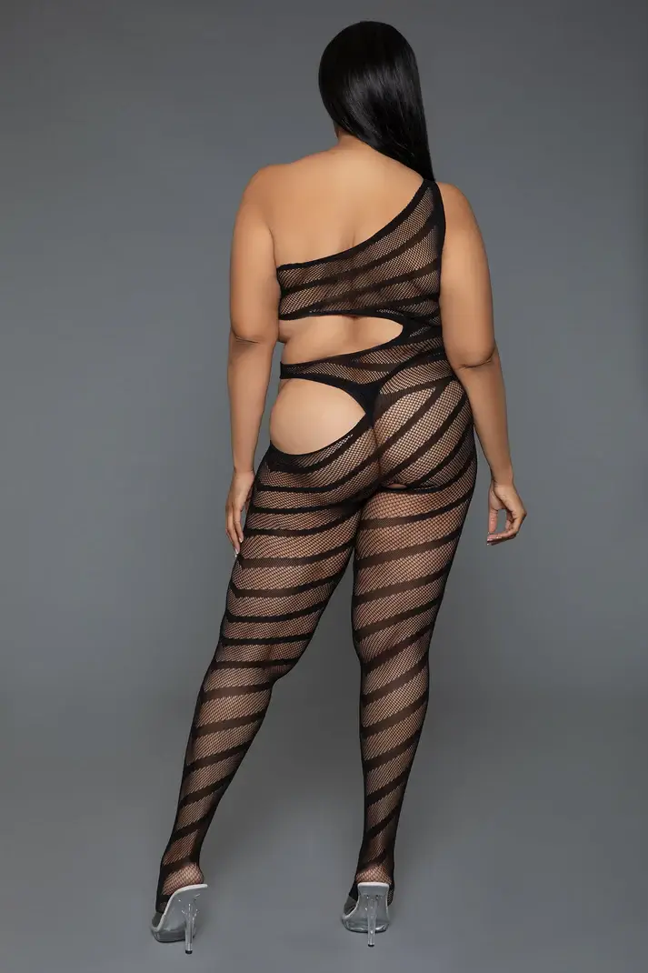 BeWicked Crazy For You Bodystocking. Elevate your style with a piece that combines bold visuals and seductive design. This bodystocking is perfect for those looking to make a striking fashion statement while embracing a sleek, streamlined cut-out silhouette.