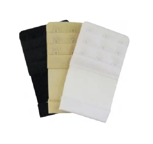 No sewing required. Stretches slightly with elastic band for a comfortable fit. Each pack comes with three extenders: one in white, one in nude and one in black. The item is 2.25 inches tall and 3.5 inches wide with the hooks sitting about .5 inches apart. The loops are .25 inches away from the edge. It’s a must have for your lingerie drawer.