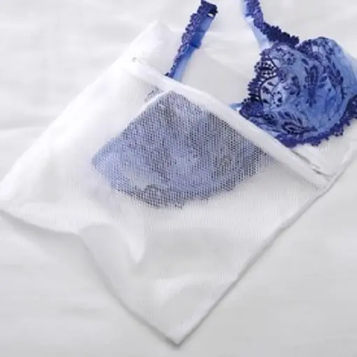 An approximate 12 x 15 zippered white mesh laundry bag that is perfect for your unmentionables! When laundering your delicates, you need to separate them and protect them. Use the bag to do just that if you choose to put them in the washing machine!