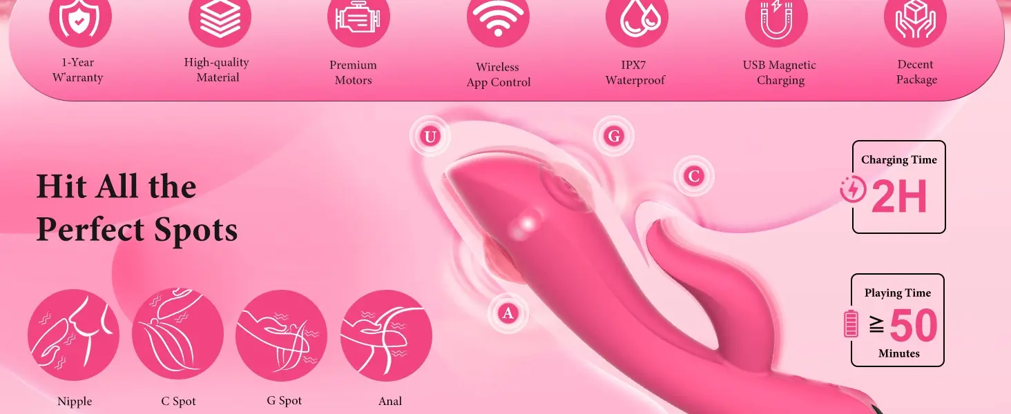 The Nidalee app-controlled rabbit vibrator boasts dual sided motors and 4 pleasure spots. This rabbit provides 7 tantalizing pulsation modes and 7 thrilling vibration patterns, to offer an array of options to explore. Enjoy interval, continuous, or high-frequency stimulation to target your special lady parts. This personal pleasure product massages the clitoris and G-spot simultaneously and can also be used for nipple and rear stimulation.